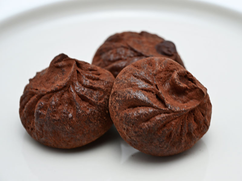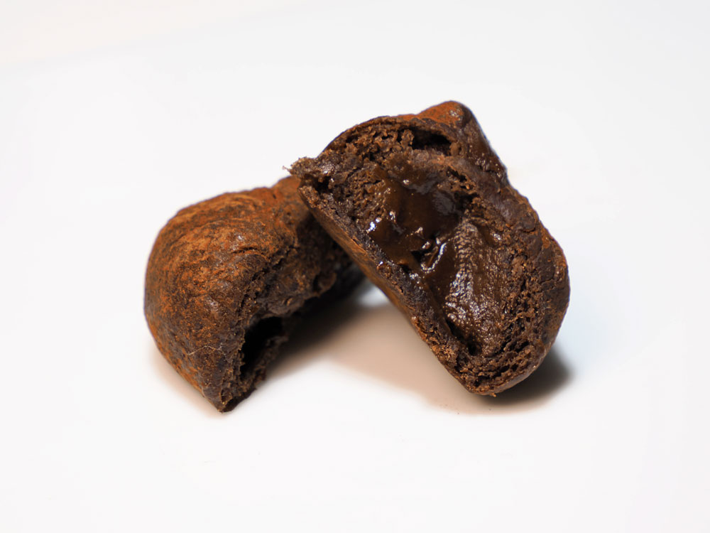 ビターチョコを練り込んだ小麦粉と米粉でできたもっちり食感の生地で濃厚チョコレートの餡を包み込みました。
